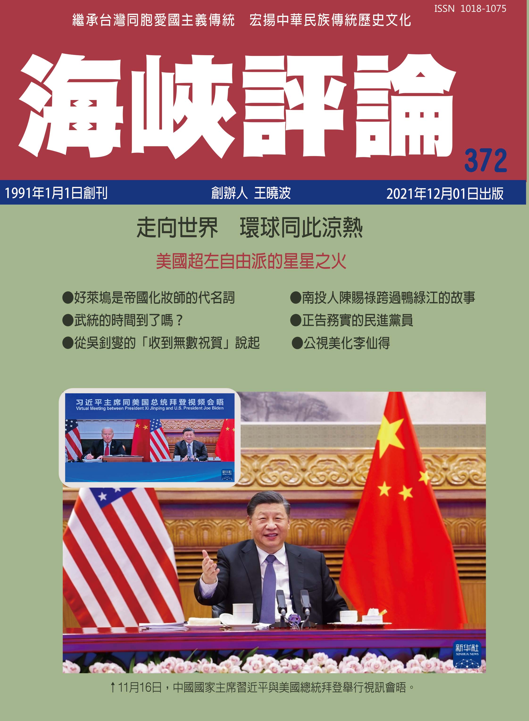 今(2021)年11月16日,中國國家主席習近平與美國總統拜登舉行視訊會晤,談到中美之間的台灣問題,習近平說:「台海局勢面臨新一輪緊張,原因是台灣當局一再企圖『倚美謀獨』,而美方一些人有意搞『以台制華』。」