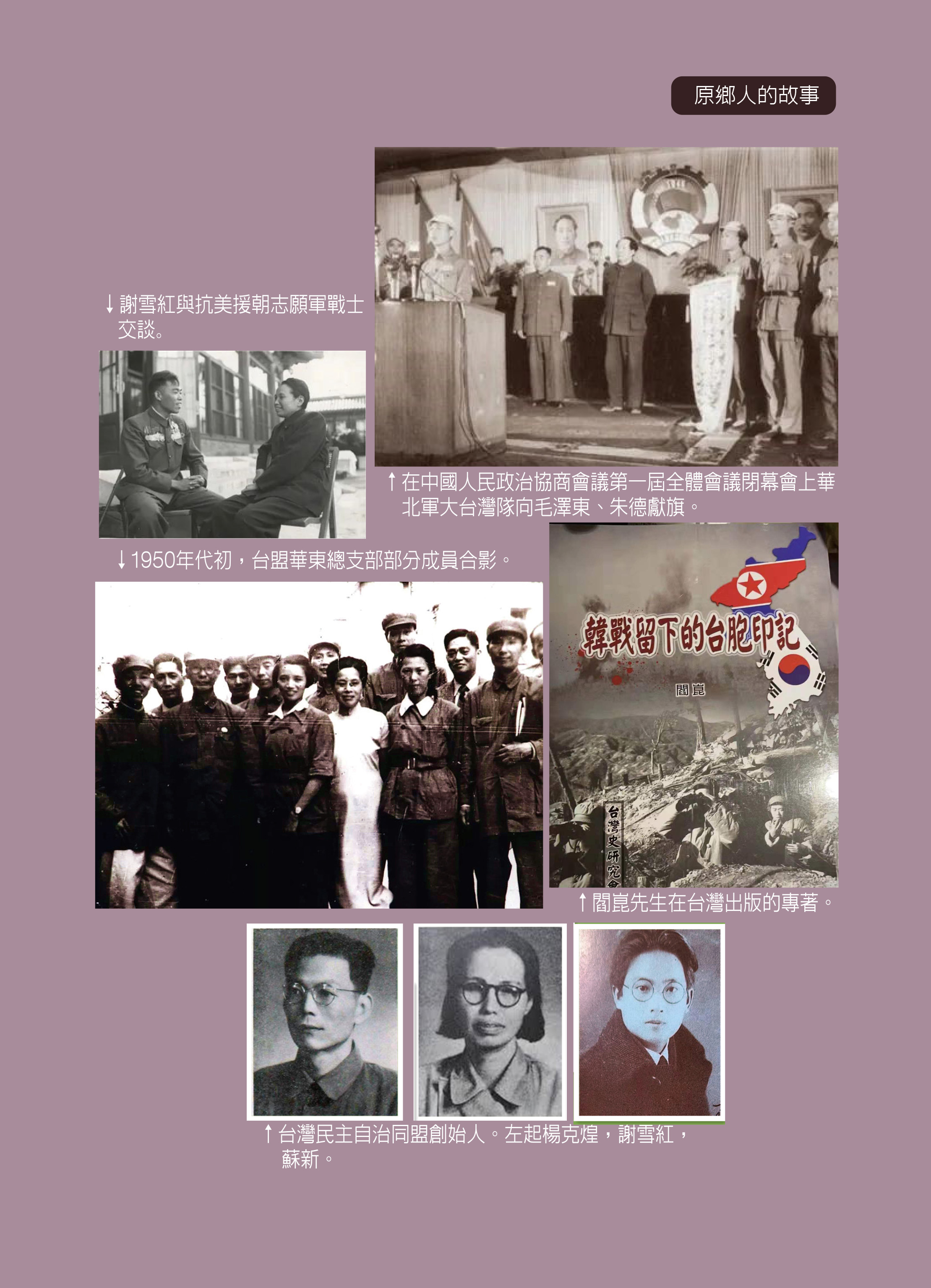 筆者在《海峽評論》上陸續發表的「原鄉人的故事--台胞與抗美援朝」專題到本期就告一段落了,連續幾篇文章講述的人和事,有些出自筆者幾十年的採訪積累,有些是從圖書館和各種資料書籍中查閱所得。這些人和事基本可以從不同方面展示廣大台胞在抗美援朝中的表現與作為。但這只是冰山之一角,生活在祖國大陸的台灣同胞應當還有更多更多與抗美援朝相關的人和事,有待於挖掘整理,筆者希望有一天,能夠讓每一位台胞在三千里江山留下的印記在世人面前更加清晰起來。也希望與有心人一起添實補充,使這座寶庫更加豐盈!◆