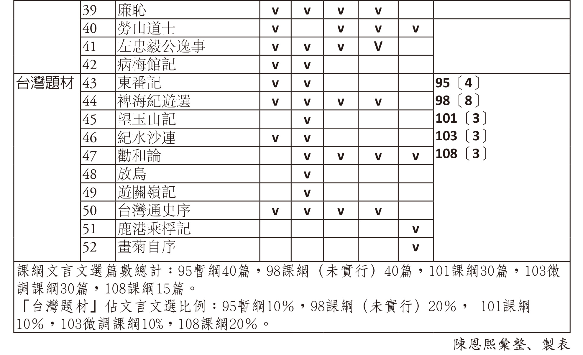 除了四書,108課綱所刪掉的經典古文,更是令人「是可忍,孰不可忍」!例如:刪掉了顧炎武的《廉恥》,學生們不再有機會思考為什麼「士大夫之無恥是謂國恥」,不再能理解「恥,是清清白白的辨別」,再加上日常新聞中不清不白的廟堂小丑個個吃香喝辣,耀武揚威,年輕學子怎麼能不是非錯亂,價值混淆呢?所以108課綱就是個「無恥」的課綱。此外,他們還刪掉了柳宗元的《始得西山宴遊記》,那是一篇處理個人生命挫折多重要的範文;他們還刪掉了范仲淹的《岳陽樓記》,學生們可能以為「先天下之憂而憂,後天下之樂而樂」是個神話,他們失去認識一個建立生命高度,學習大我關懷的典範;刪除了荀子《勸學》,學生失去了思考學習的意義、方法、步驟的導引佳作;拿掉了《台灣通史序》,讓學生不知道台灣人的祖先多重視民族精神、文化香火。……他們是不是犯下萬死莫辭的罪行。
