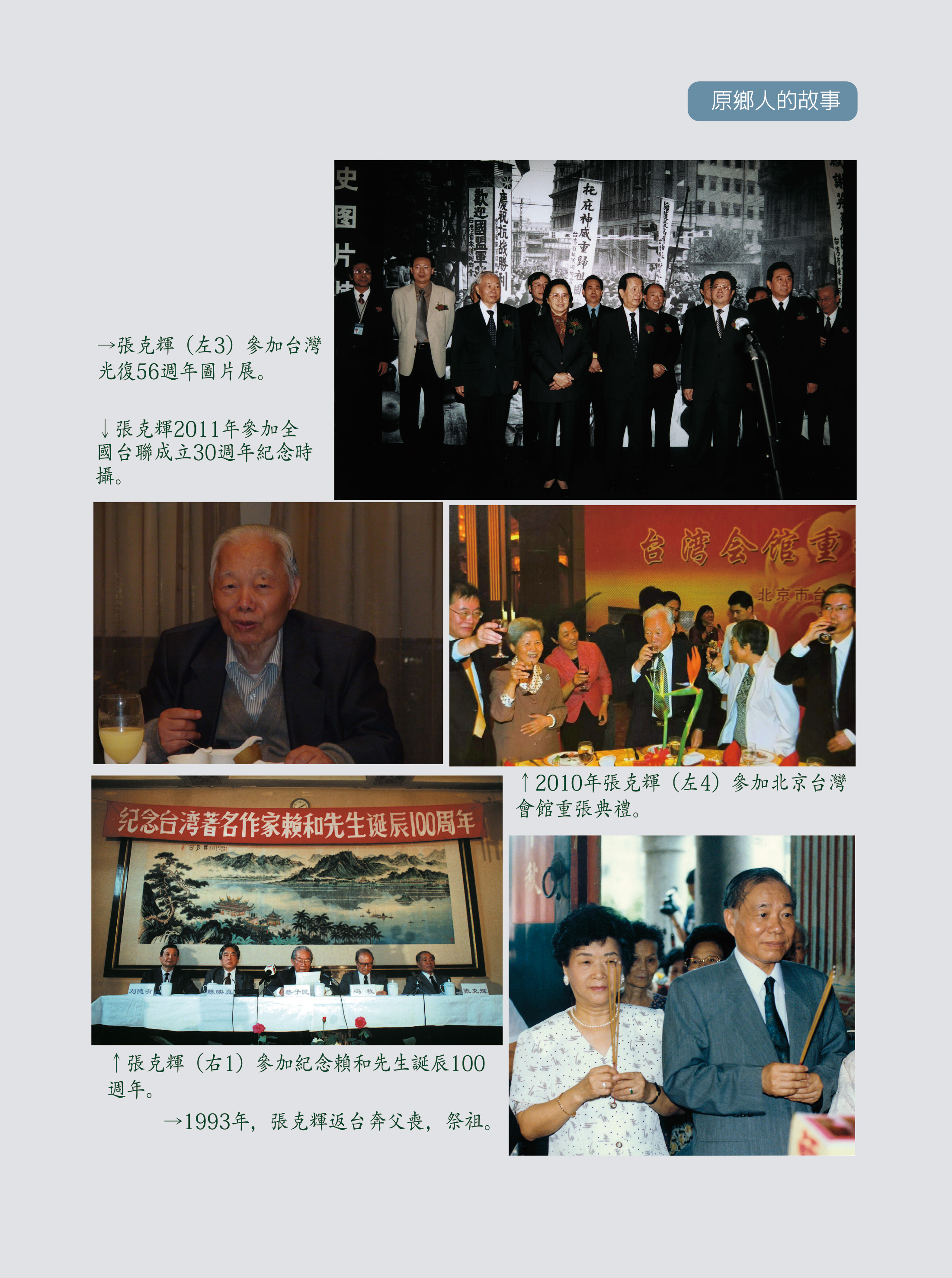 在彰化市西門口張厝的族譜中,他的名字叫有義,他的三弟叫有信,四弟叫有衛;跟台灣的老父老母通電話,那邊傳來的聲聲呼喚都是「有義」;他出訪美國,在機場大廳喧囂的歡迎人群中,一聲「有義」的呼喚,能讓他「一下子被拉回到五十年前」,乃至於寧可辭卻記者們長槍短炮的包圍,也要去見見離別半世紀的老同學。但是,更多的人們記住的是他在大陸用的名字--張克輝,因為伴著這個名字的頭銜令人炫目:至今為止在中國大陸政治地位最高的台灣人,曾任全國政協副主席,台灣民主自治同盟主席。