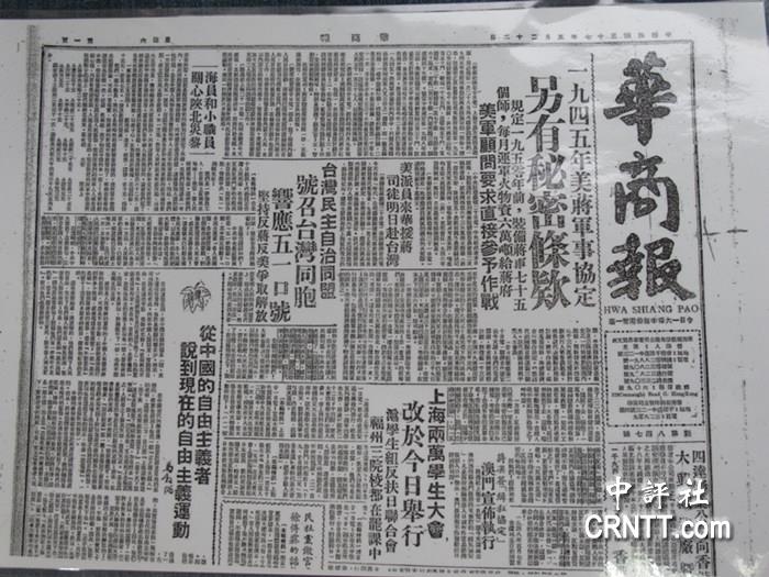 1948年5月22日,香港《華商報》以《台灣民主自治同盟號召台灣同胞響應五一口號,堅持反美反蔣爭取解放》為題,發表台盟的《告台灣同胞書》(中評社圖片)
