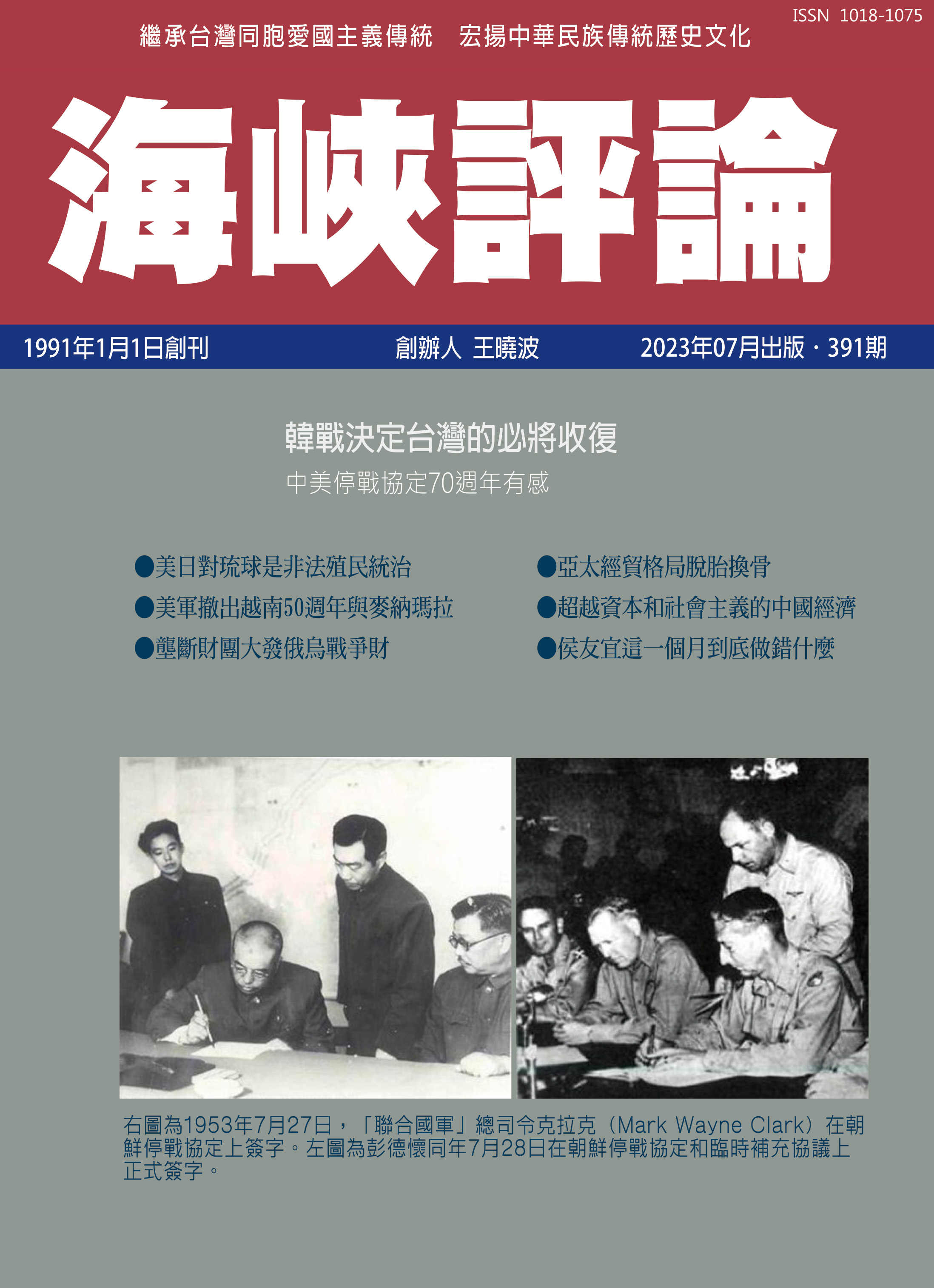 蔡政府中大概無人留意他們選擇的這一天,正是美軍在歷史上最屈辱的一天,70年前的7月27日,「聯合國軍」(主要是美軍)司令官克拉克在板門店停戰協定簽字後坦承:「我成了歷史上第一位在沒有勝利的停戰協定上簽字的美國陸軍司令官。我感到一種失望的痛苦……」。
